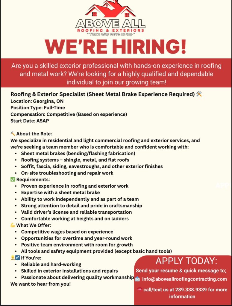 Join Above All Roofing: Build Your Career with One of Central Ontario’s Top Exterior Renovation Companies